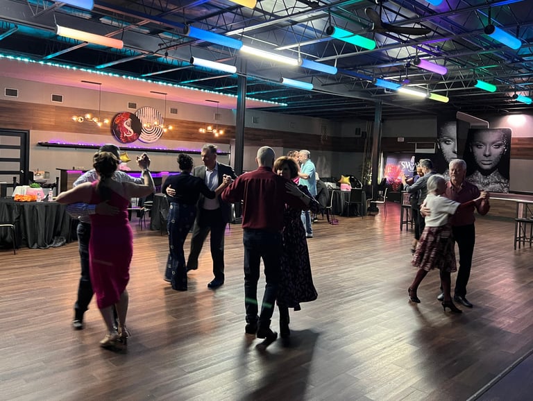 A milonga is a social dance event where Argentine tango is danced. Unlike a class or practica, the focus is not on instruction, but on connection, music, and enjoyment.